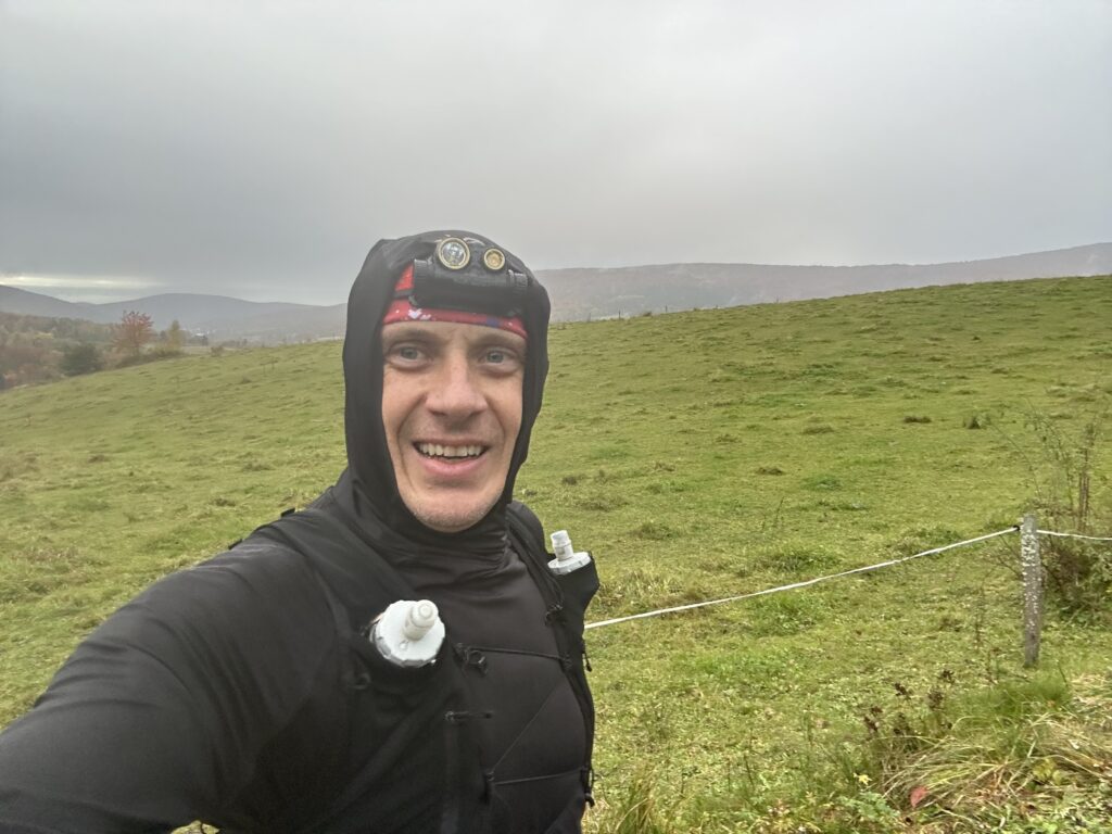 Po zaliczeniu obu szczytów, przebiegamy przez Zdynię i podchodzimy stromym zboczem na Popowe Wierchy. W lesie pojawia się coraz więcej błota, które dosyć skutecznie spowalnia tempo. Miejscami ciężko jest stawiać kolejne kroki, ze względu na możliwość utraty obuwia albo wywałki. Jest bardzo ślisko. Otuchy dodaje zorza na horyzoncie. zwiastuje ona nadchodzący dzień, który wita nas lekkimi opadami. Po kilku dodatkowych kilometrach dobiegamy na punkt odżywczy w Bartnem, gdzie uzupełniamy zapasy i kosztujemy zupę z kanapkami. W nogach mamy niecałe 50km, jednak nie czujemy jeszcze zmęczenia i morale dopisują. Opuszczamy punkt odżywczy i wbiegamy do Magurskiego Parku Narodowego, który wita nas niesamowitymi kolorami drzew i jeszcze większą ilością błota. Krajobraz jest przepiękny, a szlak jeszcze bardziej śliski. Tu zaliczam pierwszą glebę, dosyć mocno naciągając mięśnie grzbietu podczas upadku – nie przeszkadza to jednak w kontynuowaniu zawodów. Staramy poruszać się sprawnie i biec tam gdzie to możliwe. Mijamy Magurę, Świerzową i Kolanin. Z nogą w dalszym ciągły wszystko ok, ale mimo to, nie pozwalam sobie na puszczenie się w dół na zbiegach.
